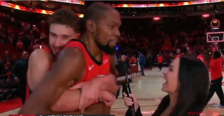 杜兰特接受采访时 申京跳着跑过来拥抱庆祝