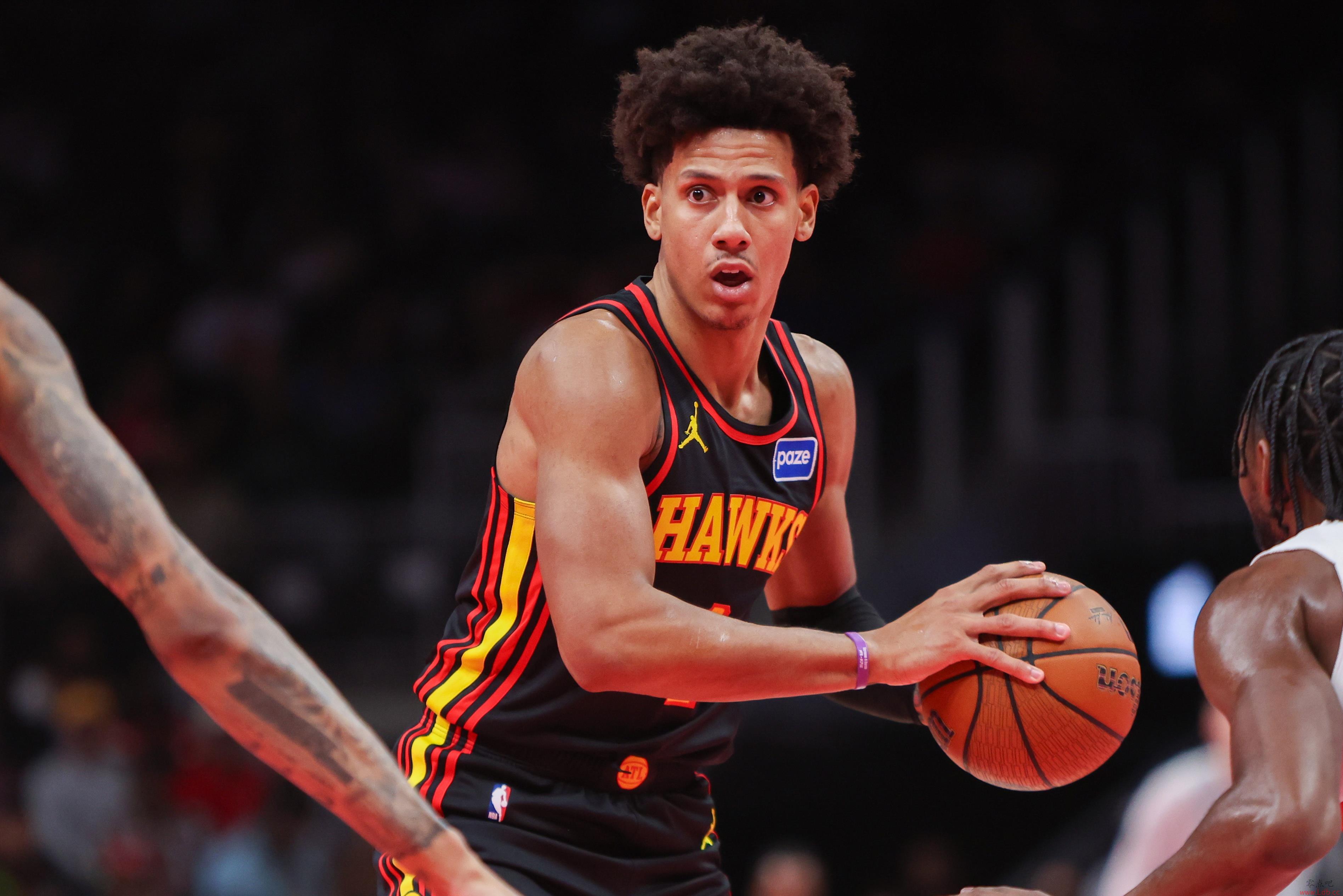 在最近的3场比赛中,杰伦·约翰逊场均26.7分12.7篮板9.7助攻3抢断,投篮和三分命中率分别是66.7%、72.7%。