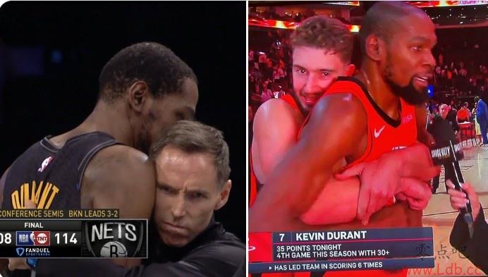 杜兰特接受采访遭申京熊抱!申京:玛德法克 我们就是这样赢球的