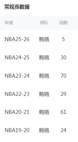 锡安职业生涯至今出场数