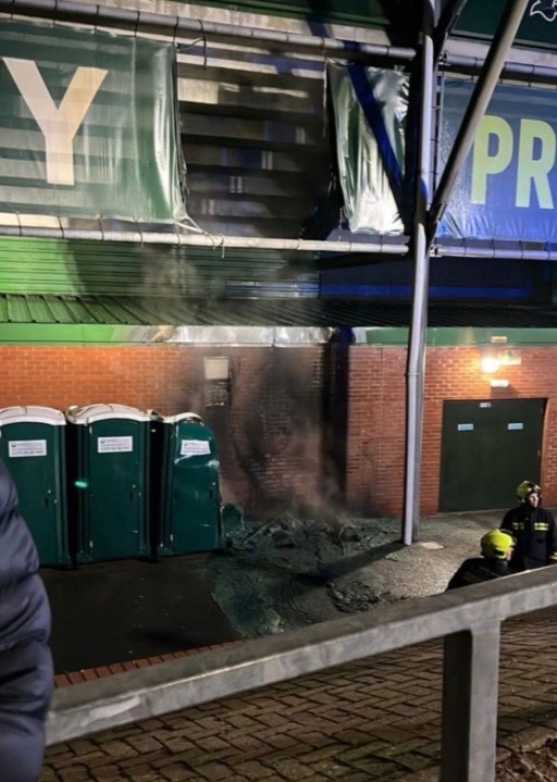 据普利茅斯当地媒体报道,德文郡和萨默塞特郡消防救援服务部门于晚上9点10分接到火灾报告,卡梅尔斯黑德和格林班克消防站的消防车赶赴现场。消防员发现火势仅限于两个移动厕所,然后用消防水带将其扑灭。位于体育场外墙上的厕所在火灾中被彻底摧毁。