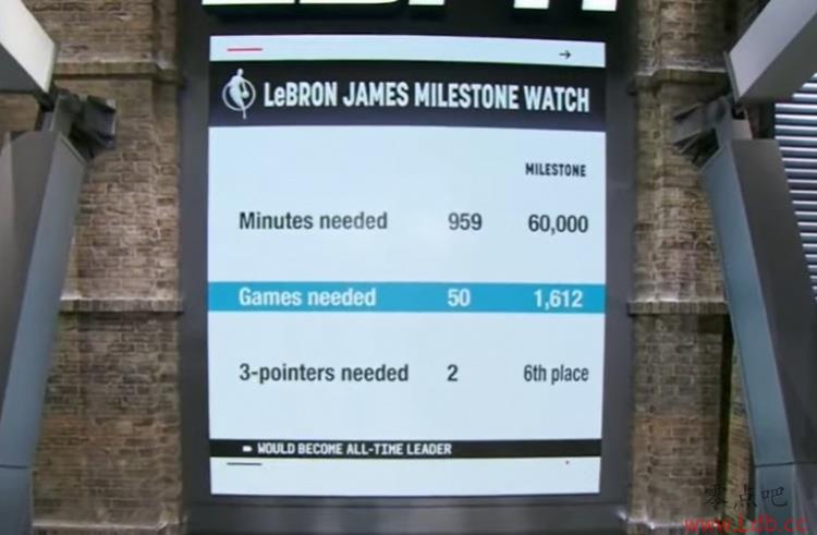 媒体总结了本赛季赛季可能达成的一些里程碑,他距离成为第一位达到60000分钟出场时间的球员还差959分钟;他需要再打50场比赛才能超越罗伯特·帕里什,占据历史第一。