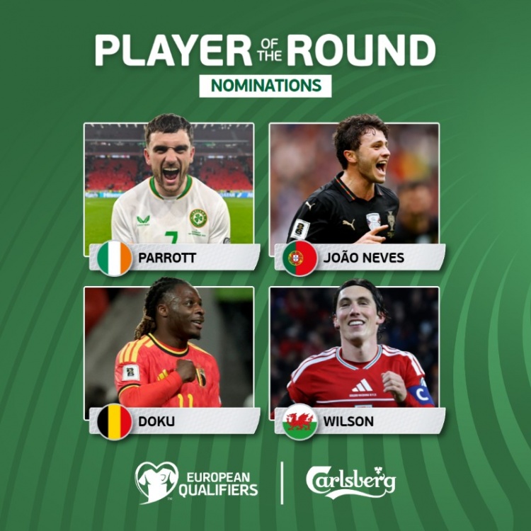 零点吧足球11月19日讯 欧洲世预赛最后一轮比赛战罢,欧足联官方公布了本轮最佳球员候选名单。