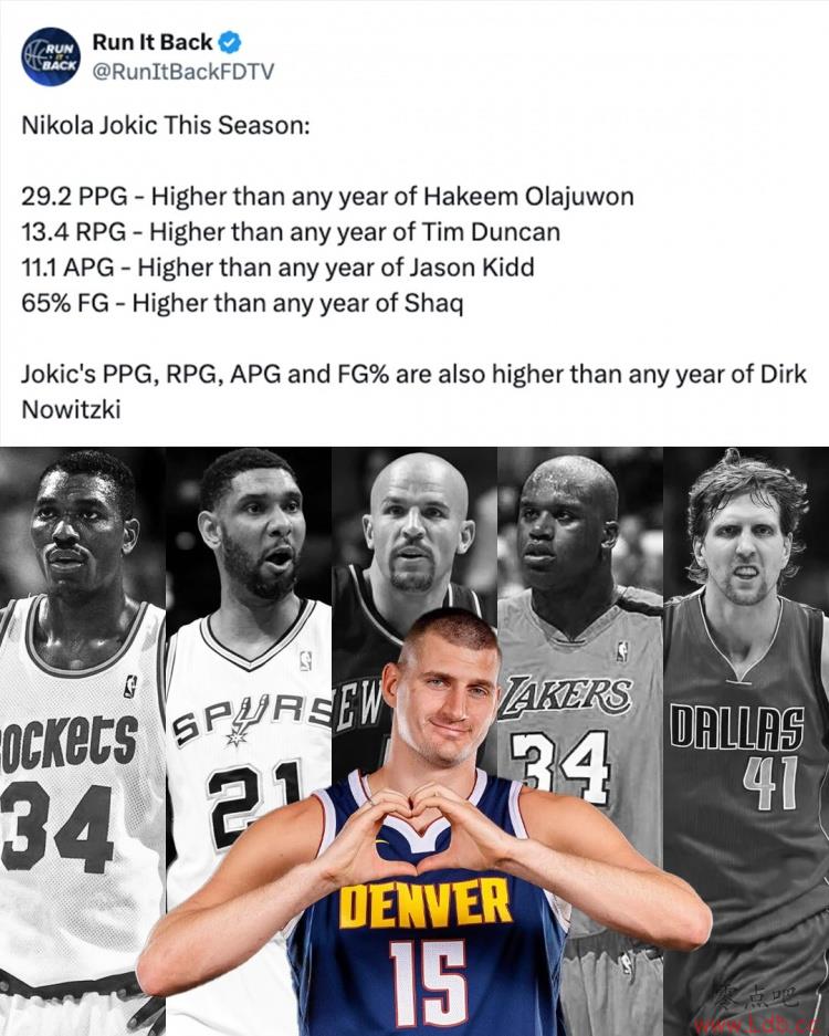 恐怖!约基奇本季得分>大梦单季场均最高 篮板>邓肯 助攻>基德