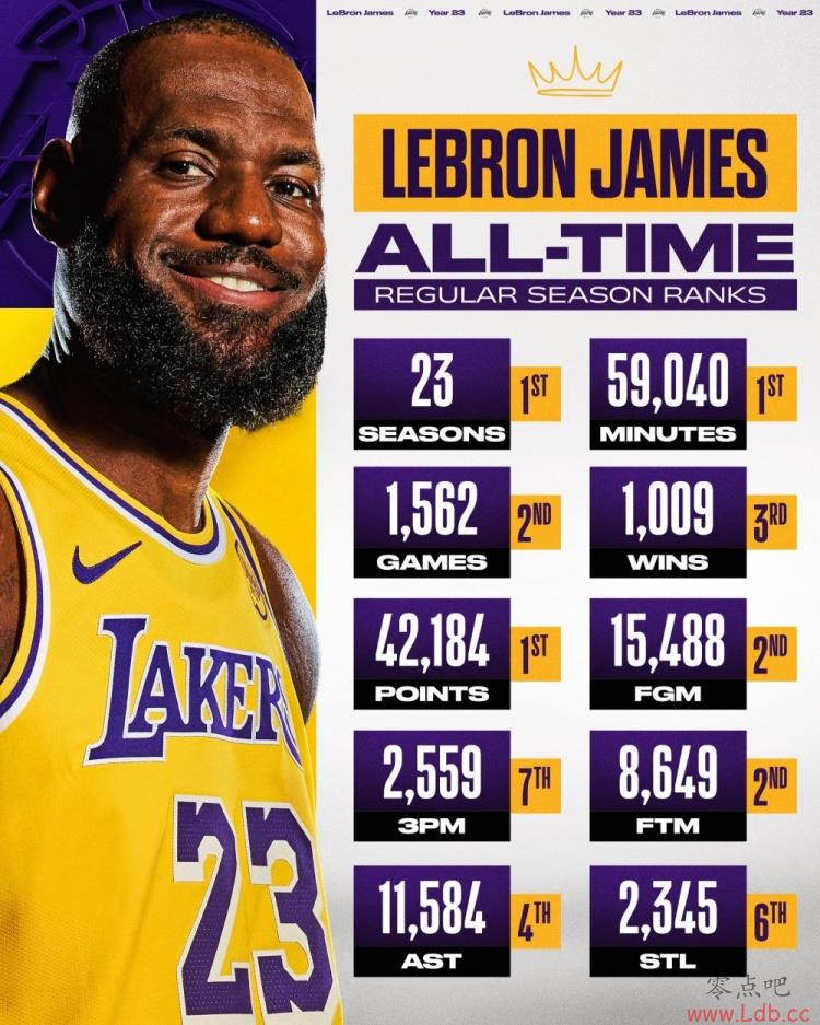 行走的纪录簿!NBA官方晒詹姆斯数据:赛季/得分/出场时间历史第1