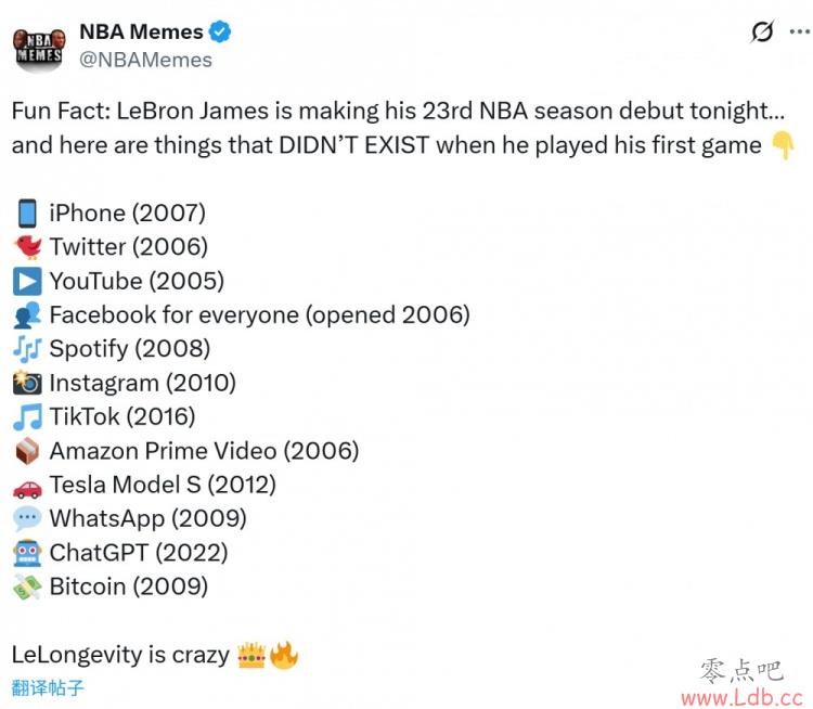 美媒NBA Memes晒出了詹姆斯2003年10月生涯首秀时还没问世的一些物品,具体如下: