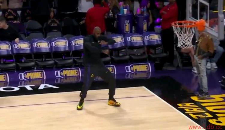 ??詹姆斯赛前天勾命中 原地扭动跳起摇手舞