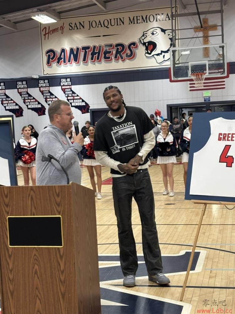 - 21日 昨日,太阳后卫杰伦·格林的高中球衣退役仪...
