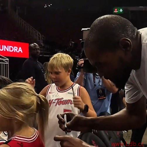 提前的祝福!杜兰特赛前为几名小球迷签名:...