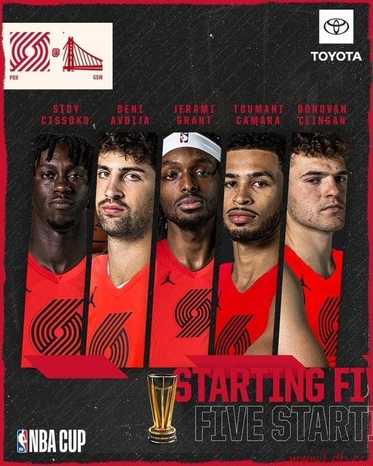 开拓者vs勇士首发:西索科、阿夫迪亚、格兰特、卡马拉、克林根