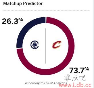 ESPN给出胜率预测,快船仅为26.3%,骑士为73.7%。