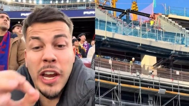 在一段观看次数超过50万次的视频中,这位网红透露了一个免费观看巴萨比赛的小窍门:“朋友们,我现在在新诺坎普球场,我要给你们一个看巴萨比赛不用花钱的小建议。这个方法“非常简单”,你只需要“申请一份建筑工人的工作,就可以免费观赛了”。