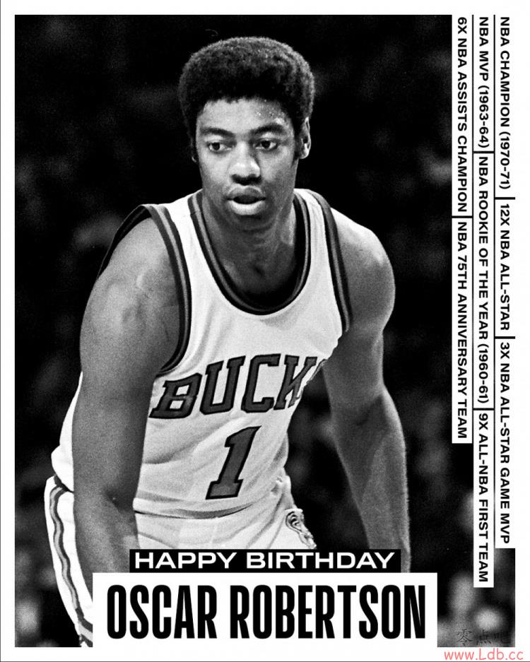 零点吧11月24日讯 今天是“大O”奥斯卡·罗伯特森87岁的生日,NBA官方祝他生日快乐。