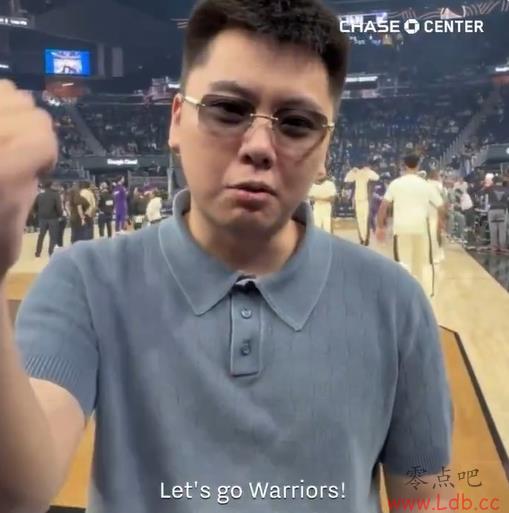 比赛中,中国歌手揽佬SKAIISYOURGOD现身场边,给勇士助阵。
