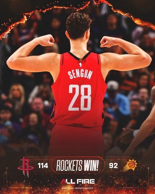 零点吧11月25日讯 NBA常规赛,火箭114-92大胜太阳。