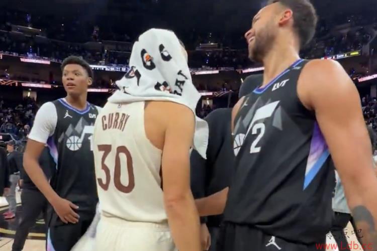 GIF-李凯尔赛后与库里追梦小佩顿拥抱互动