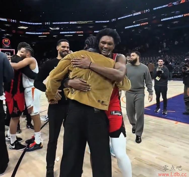 GIF-火箭&太阳赛后双方球员叙旧拥抱