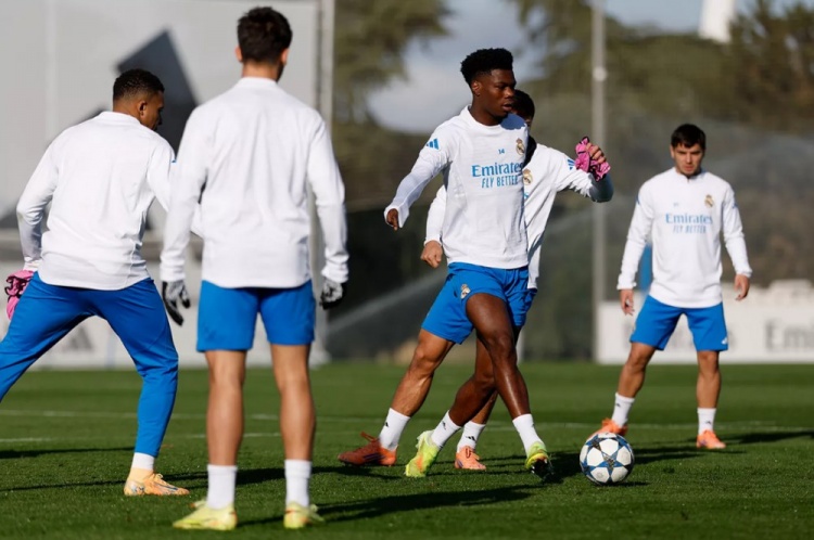 皇马官方公告如下:“球队在训练基地进行了赛前最后一练,球员们先在健身房进行了热身活动,随后在草地上进行了关节灵活性练习,并进行了分组对抗训练。”