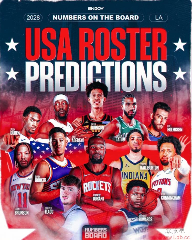美媒预测28年美国男篮阵容:KD&布克领衔 这阵容能拿奥运金牌吗?