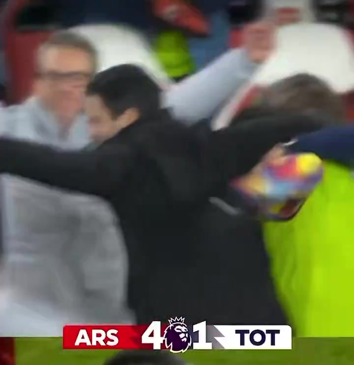 真枪手!阿森纳4-1时替补席斯凯利疯狂庆祝,与教练组激情相拥