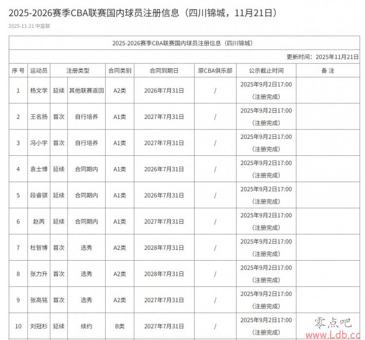 - 26日 CBA官网更新了四川男篮新赛季的球员大名单