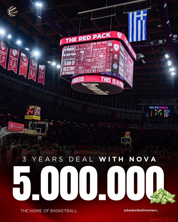 这份合同为期三年、总计500万欧元,NOVA的品牌将出现在球馆中央的大屏幕上,而该大屏幕也将更名为“NOVA CUBE”。