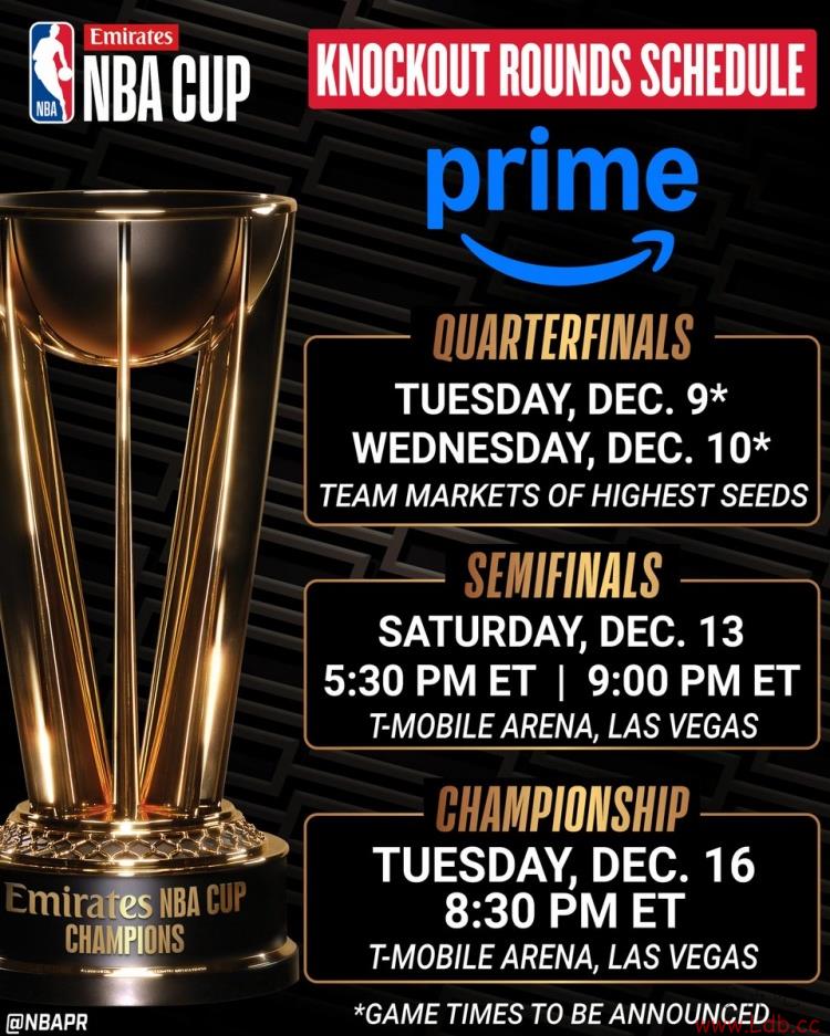 零点吧11月26日讯 NBA公布了本赛季NBA杯半决赛以及决赛的比赛时间。