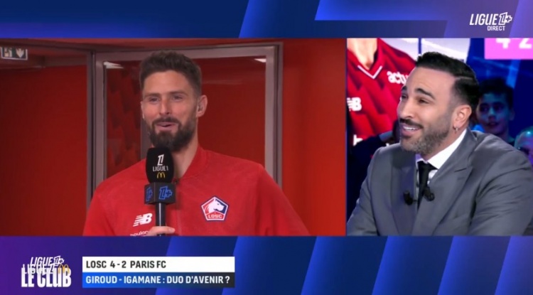 零点吧足球11月26日讯 法甲第13轮,里尔4-2战胜巴黎FC,吉鲁上演梅开二度。赛后,吉鲁接受了前国家队队友拉米的采访,并进行了一番轻松的交谈。
