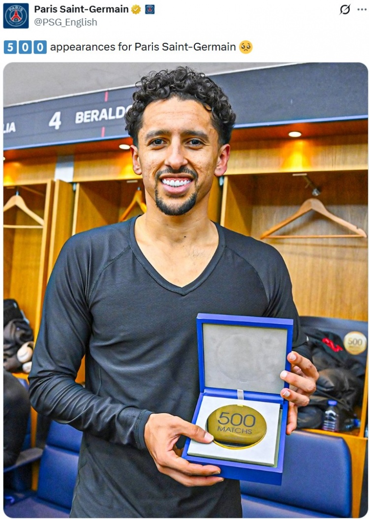 本场比赛也是马尔基尼奥斯第500次为巴黎出场里程碑之战,赛后他也获颁巴黎500次出场纪念奖章。
