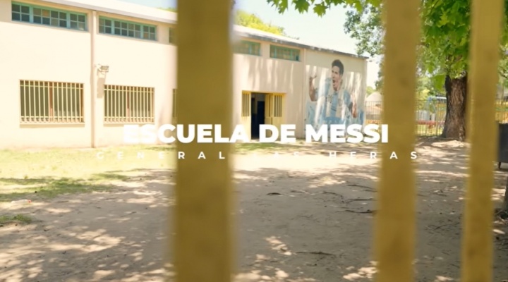 他们来到了梅西的母校General Las Heras学校,那里的墙上还有一副梅西在国家队进球后庆祝的壁画,这所学校现任校长玛利亚-何塞讲述了当年梅西在这里的故事。