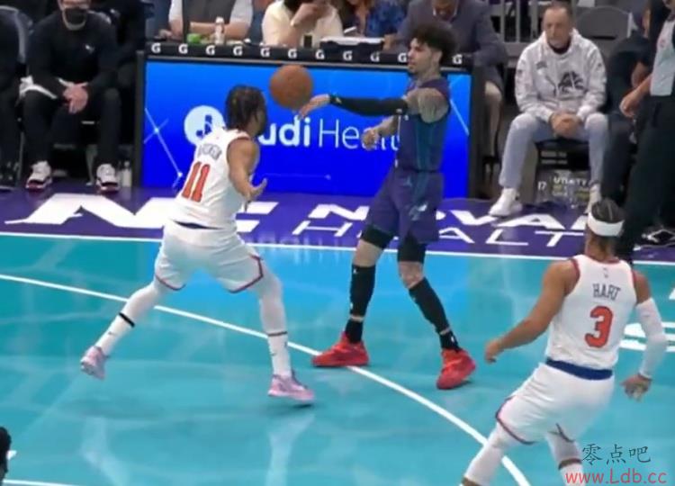 GIF-拉梅洛·鲍尔欲单手秒传 直接结结实实砸到了布伦森的脑袋