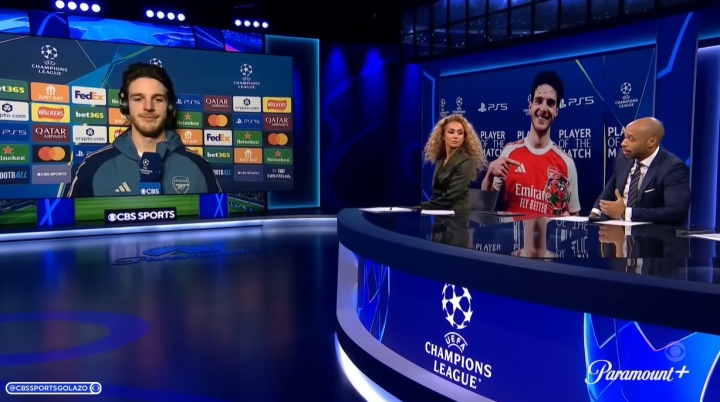 零点吧足球11月27日讯 欧冠焦点战阿森纳主场3-1战胜拜仁。赛后全场最佳球员赖斯与CBS体育进行了现场连线,阿森纳传奇亨利对赖斯的一段话引起了球迷热议。