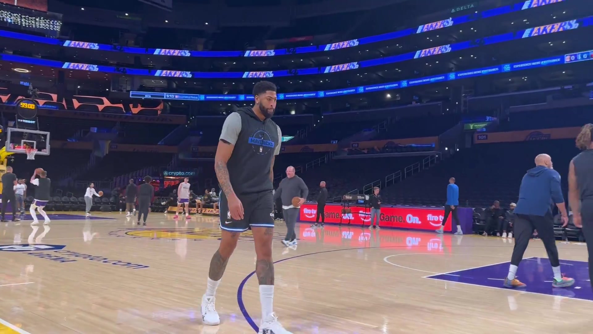 太久没回洛杉矶生疏了?浓眉赛前热身手感糟...