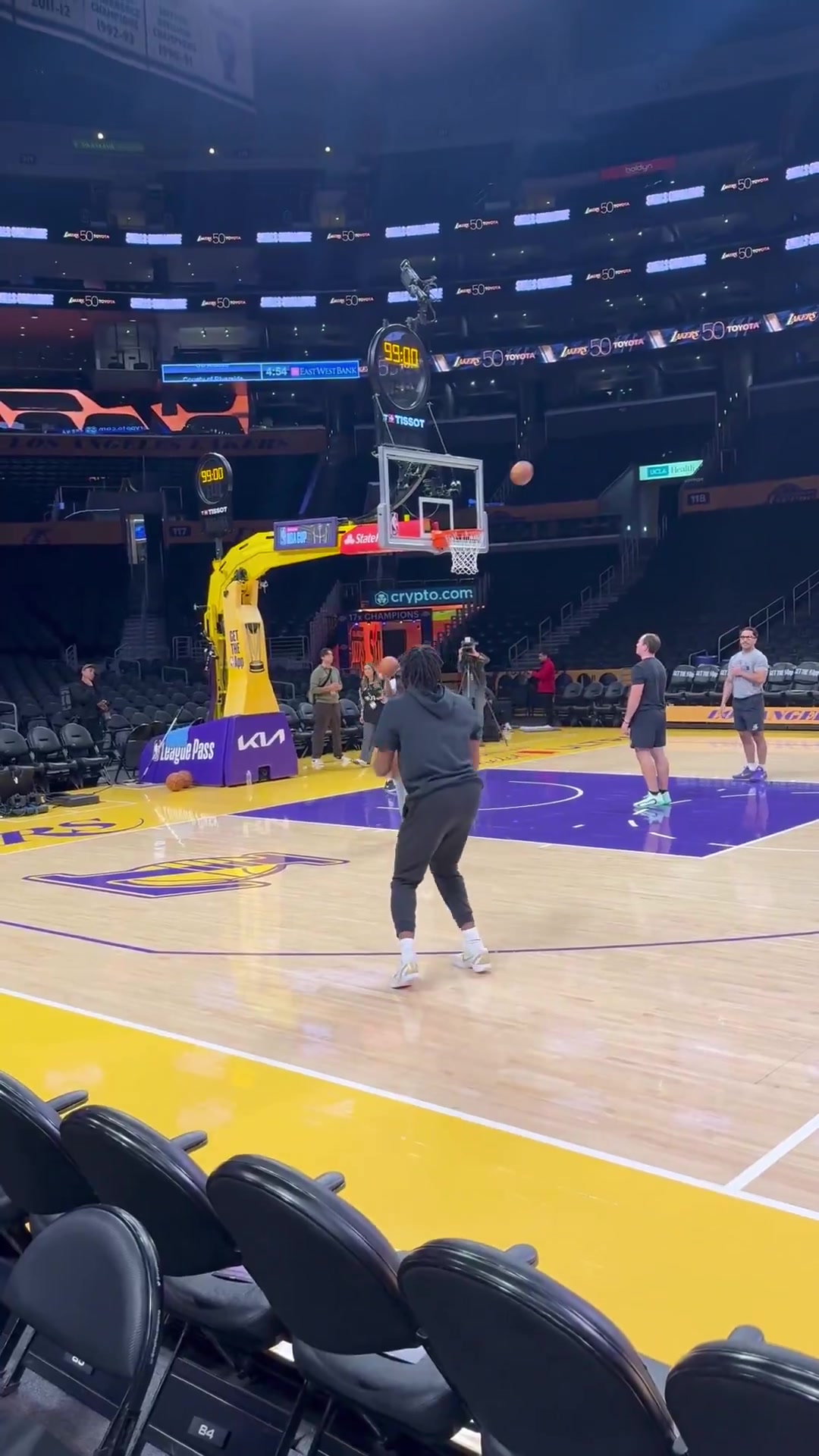 今天有机会上场吗?湖人新秀蒂耶罗赛前练三分 45度角5投4中