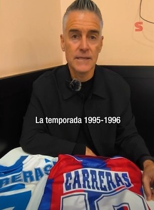 路易斯·卡雷拉斯:是的,希望他能看到这个故事,然后我们可以交换球衣。他可以收到一件复古款的老球衣,而我当然会得到他去年或者现在穿的那件。