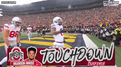 零点吧11月30日讯 今日俄亥俄州立大学橄榄球队外接手布兰登·伊尼斯在对阵密歇根大学的比赛中完成达阵。