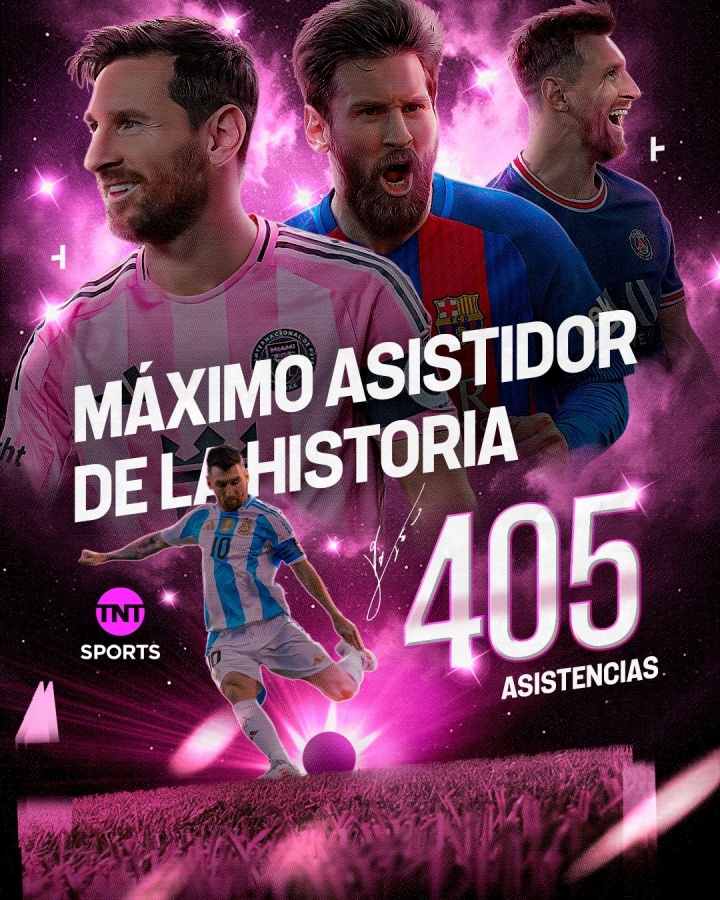 第67分钟,梅西助攻西尔维蒂,迈阿密国际3-1纽约城。TNT发文晒图,这是梅西生涯第405次助攻,38岁梅西生涯1136场收获405次助攻。