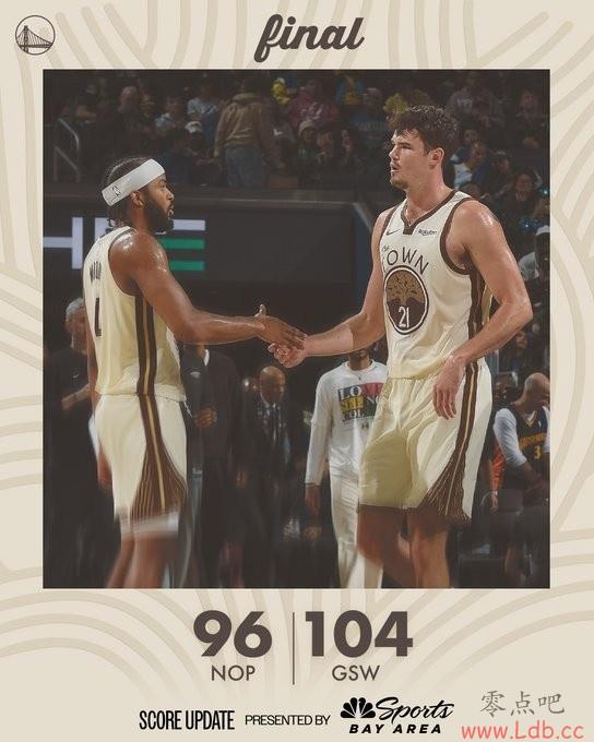 零点吧11月30日讯 NBA常规赛,勇士主场104-96战胜鹈鹕。