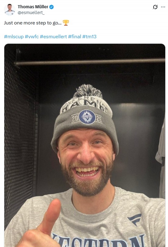 - 30日 进入美职联总决赛,托马斯·穆勒晒视频感谢...