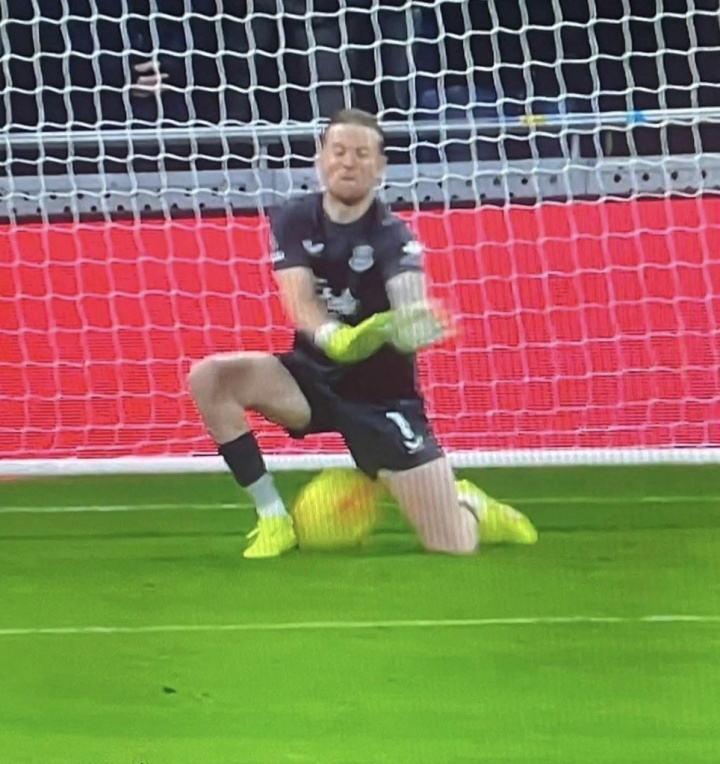 英超第13轮,埃弗顿主场1-4惨败纽卡斯尔联。比赛第25分钟,皮克福德扑救失误导致丢球。