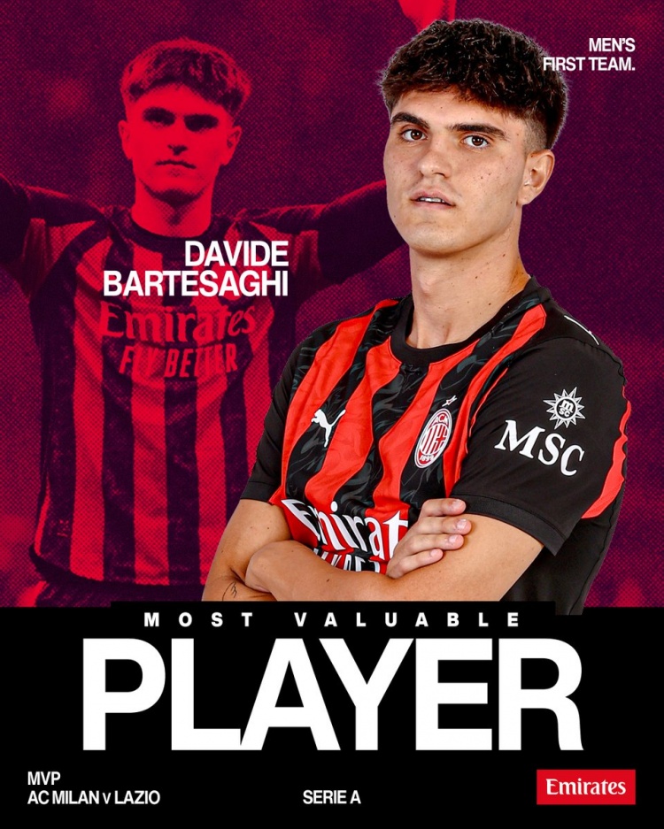 零点吧足球11月30日讯 意甲第13轮,米兰主场1-0击败拉齐奥,据赛后米兰官方消息,巴特萨基当选此役队内最佳球员。