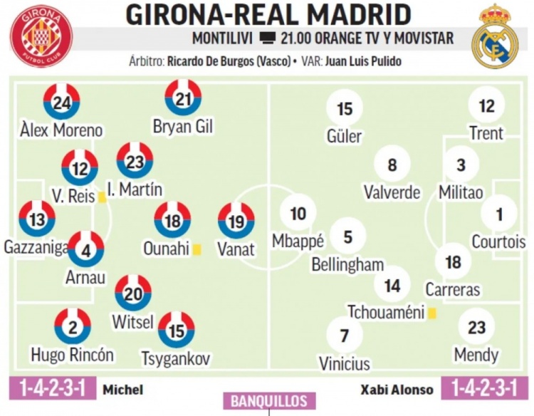 皇马方面,卡瓦哈尔和赫伊森肯定缺席。阿拉巴和阿森西奥有可能进入比赛名单,但最终名单要到比赛当天才能确定。据阿隆索在新闻发布会上透露,米利唐和吕迪格将回归阵容。