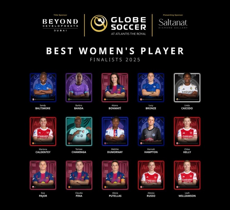 零点吧足球12月3日讯 环球足球奖公布了2025年最佳女足球员15人最终候选名单,邦马蒂、普特拉斯、汉普顿、鲁索、凯莉在列。