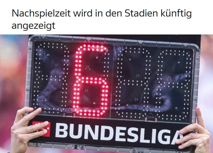 2026年起,德甲和德乙的球场大屏幕将显示补时具体时间