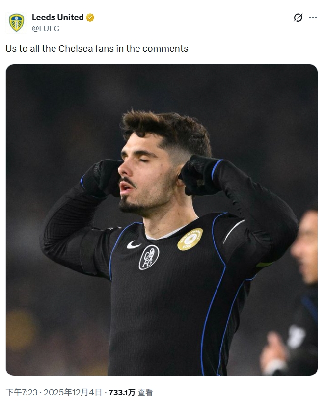 零点吧足球12月05日讯 英超第14轮,升班马利兹联主场3-1爆冷击败切尔西,赛后,利兹联官方社媒发文“挑衅”切尔西球迷。