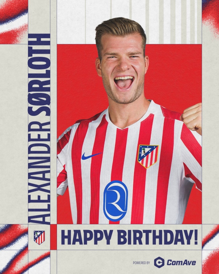 马竞官方社媒晒出瑟尔洛特的生日海报,配文:“生日快乐,瑟尔洛特!”