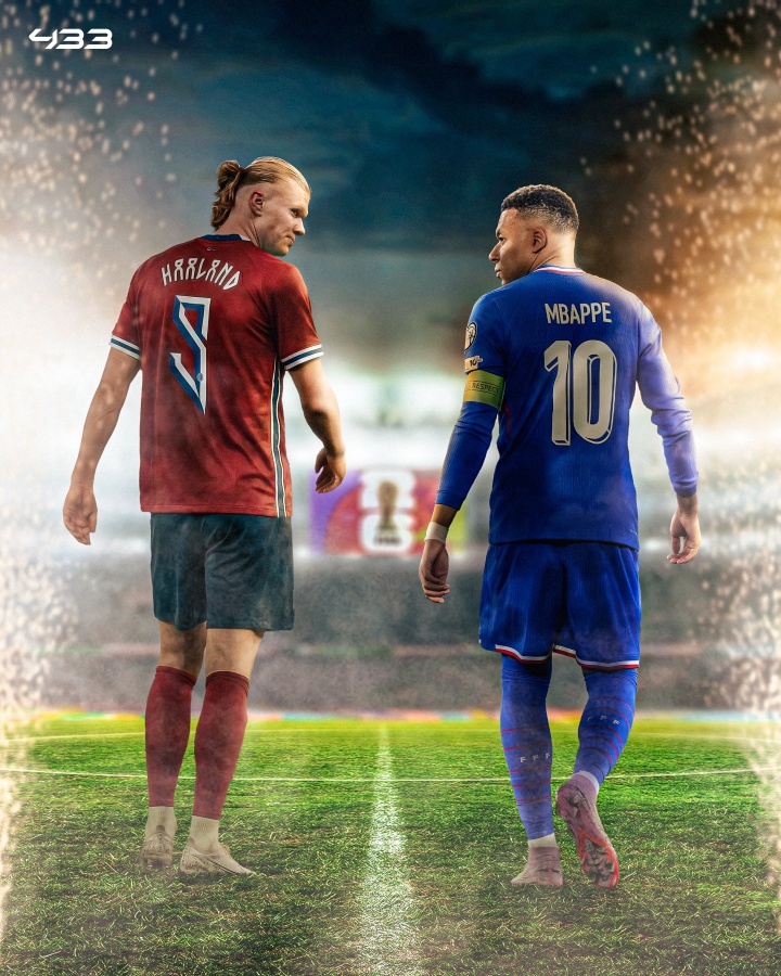 本赛季姆巴佩和哈兰德都状态出色,姆巴佩在俱乐部+国家队各赛事24场30球7助攻,哈兰德在俱乐部+国家队各赛事24场33球5助攻。