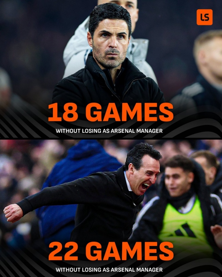 据livescore数据统计,阿尔特塔在阿森纳执教时期最长的18场不败纪录被埃梅里终结了,这位阿森纳前主帅确保了自己2018年创造的22场不改纪录没有被后来的继任者打破。