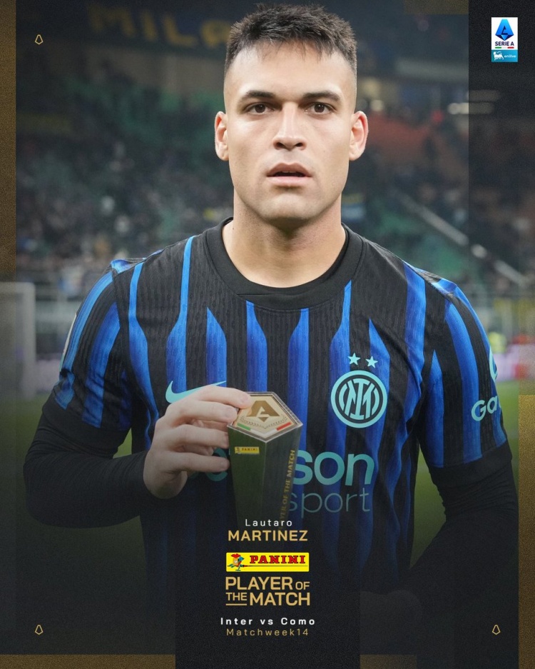 零点吧足球12月7日讯 意甲第14轮,国米主场4-0击败科莫。赛后意甲官方消息,劳塔罗被评为此役全场最佳球员。