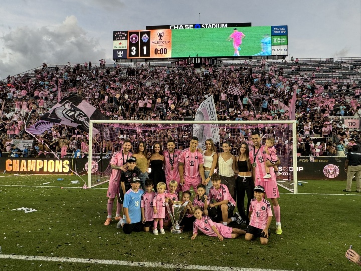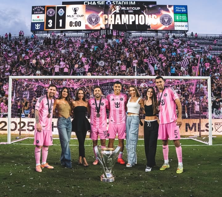 冠军背后的女人??迈阿密太太团合影美职联总冠军奖杯??